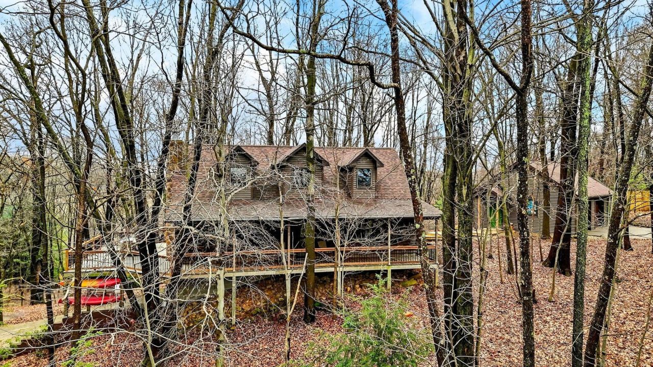 Surrounded by nature and perfectly situated to capture peaceful views, this one-of-a-kind property offers a tree house feeling. Sitting on 5.85 acres, the home welcomes you with a spacious wrap around deck, ideal for morning coffee or just soaking in the serene, wooded setting. Inside you'll find a beautifully appointed kitchen featuring granite countertops, a center island, and a cozy eating area framed by French doors that bring the outdoors in. The lower level family room creates a warm and inviting space to gather, complete with a wood burning fireplace for those crisp Ohio evenings. Recent improvements to the home include roof, furnace, and hot water heater. Step outside to unwind in the hot tub or explore everything this versatile property has to offer, including a 2 1/2 car detached garage with attic storage, a utility shed with garage doors, a smaller storage shed, and a charming cabin overlooking the garden. The cabin has its own kitchen/living area, bedroom, bathroom, and RV style waste setup - perfect for guests or a private studio retreat. Hocking county, Logan Elm schools.Only the attached stain glass stays, which include the one in the garage and two in the cabin (green one and door transom).