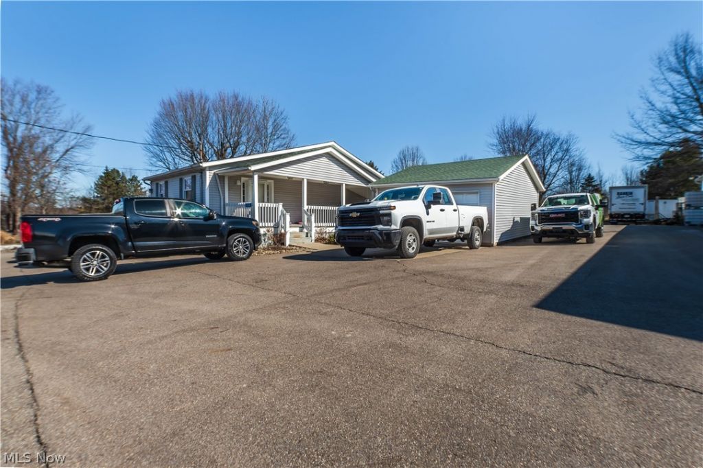 Rare opportunity in Hartville offering exceptional flexibility for business owners, contractors, investors, or those seeking a live-work property. Situated on 0.79 acres along Ravenna Ave, this unique property combines office space, warehouse storage, and residential potential all in one location. The main ranch building offers 1,100 sq ft above grade with an additional 700 sq ft of finished basement space and was originally built as a residence before being converted to office use. The layout currently includes 1 bedroom and 3 full bathrooms, providing flexibility for continued office space, a home-based business, or potential conversion back to residential living. A standout feature of the property is the 96' x 40' warehouse, offering substantial space for equipment storage, workshop use, contractor operations, or small business needs. The warehouse is equipped with its own full bathroom, a wood-burning stove, and a fuel oil furnace, allowing the space to be comfortably used year-round. Additional improvements include a 2-car detached garage, providing extra storage or workspace. While the parcel is zoned residential, it is located within a B2 commercial corridor, allowing businesses to operate from the property and creating a unique opportunity for owner-operators, service companies, trades, or investors looking for a highly versatile property. With nearly an acre of land, multiple structures, and endless potential uses, this property offers a rare chance to own a functional space that can support both business operations and residential possibilities in a convenient Hartville location.