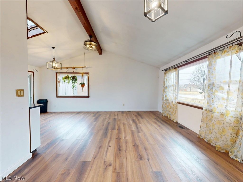 Welcome home to this beautifully maintained 4-bedroom, 2-bath split-level offering warmth, character, and flexible living space. The main level features an open and inviting layout with vaulted ceilings, exposed beams, and an abundance of natural light flowing through the living, dining, and kitchen areas. The kitchen includes granite countertops, stainless steel appliances, and ample cabinetry, making it ideal for everyday living and entertaining. The lower level provides a spacious family room perfect for relaxing or hosting, along with a dedicated laundry area. A bonus room offers additional flexibility for a home office, workout space, playroom, or guest area. Bedrooms are comfortably sized, and both full bathrooms feature updated finishes. Recent improvements include a new fence, all new windows, updated flooring throughout, and a new driveway within the last five years. An attached garage adds year-round convenience and functionality. Step outside to enjoy a fully fenced backyard with a patio and pergola ideal for outdoor gatherings. This home blends thoughtful updates with unique character and is ready for its next owner.