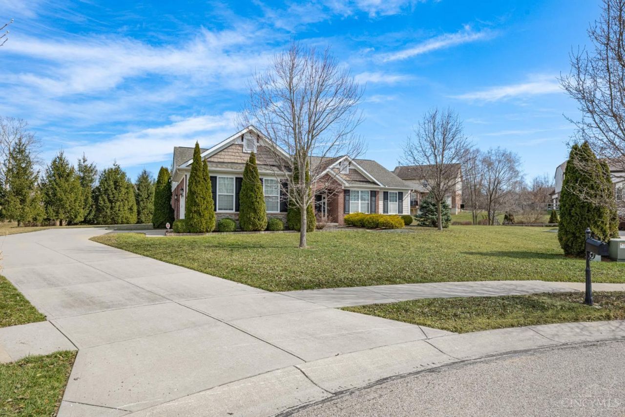 Welcome home! Beautifully maintained 3-bedroom, 2-bath ranch with private office and full unfinished basement in the desirable Renaissance Pool Community. Situated on a private cul-de-sac lot, this home offers both privacy and convenience just minutes from the highway. The open-concept floor plan features a split-bedroom design, with the primary suite located on its own wing for added privacy. The opposite side of the home includes two additional bedrooms and a dedicated office/study. Interior highlights include formal dining, custom molding and woodwork, gas fireplace, and a high-end kitchen with quality finishes. The full basement is already framed + ready for drywall, offering excellent potential for additional finished living space. Outdoor features include a rear patio ideal for relaxing or entertaining. Community amenities include two pools, wooded walking trails, parks, and ponds. This community is located right in between DAYTON & CINCI. 35-40 mins to downtown cinci & 30 mins