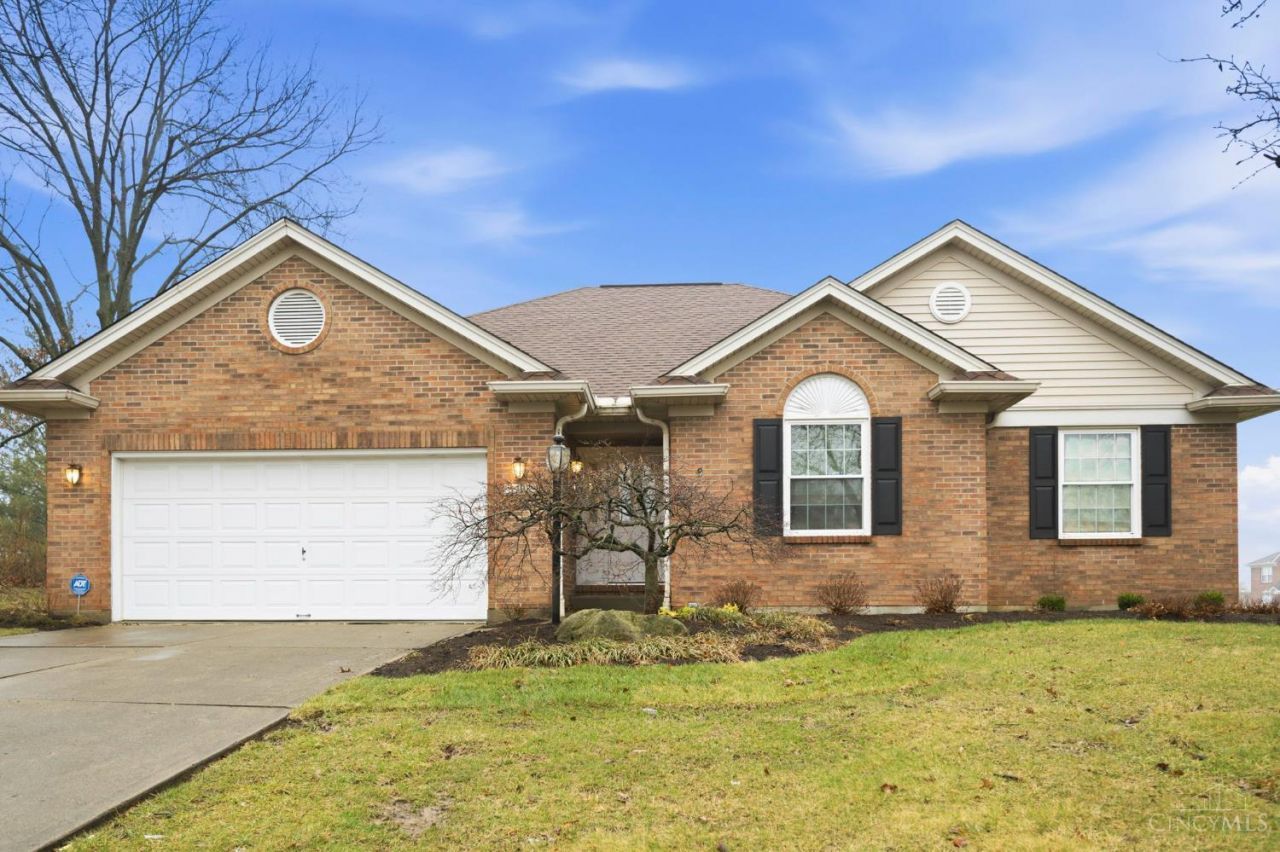 Beautiful brick ranch offering easy one-level living with an open and spacious layout! This well-maintained home features gleaming hardwood floors throughout the main living areas and bedrooms, creating a warm and inviting feel. The large primary suite includes a generous bedroom, double vanity, walk-in closet, and private bath with walk-in shower. Two add bedrooms provide comfortable space for family, guests, or a home office. The bright kitchen offers abundant cabinetry, stainless steel appliances, and a convenient breakfast bar that opens to the dining areaperfect for everyday living and entertaining. The adjoining living room features a cozy fireplace and large windows that fill the space with natural light. Step outside from the dining area to enjoy the backyard and patio area, ideal for relaxing or hosting gatherings. Add. highlights include a 2-car attached garage, attractive brick exterior, and a quiet residential setting. Conveniently located!