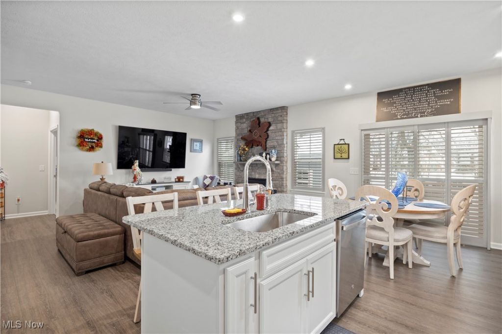 Holy moly? look at this one!!!!!!! Why wait to build when this move-in-ready stunner is already done and dripping in upgrades? Welcome to 6194 James in Sandy Springs, nestled in the Amherst School District?a 2025-built Ryan Homes Alberti Ranch that absolutely delivers. This 3-bedroom, 3-bath ranch offers a bright, open-concept layout where the gourmet kitchen, dinette, and family room flow effortlessly together. Granite countertops, stainless steel appliances, an electric stove, and large windows flood the space with natural light, while the gas fireplace and surround sound make the living room extra cozy and entertaining-ready. The luxurious owner's suite is your private retreat, featuring a double-bowl vanity, oversized shower, and a walk-in closet you'll love. Step outside to the covered porch?perfect for bringing the outdoors in and enjoying extra living space year-round. Downstairs, the finished lower level impresses with a massive 36x20 family/rec room, full bath, plush carpet, and an egress window?ideal for guests, movie nights, or a home gym. Outside, enjoy a poured patio, wrap-around sidewalk, and fresh landscaping, with newly planted pines that will grow into a natural privacy fence. Bonus features include an insulated 12x20 shed with a concrete floor, extra storage space in the 2-car garage, and an ADT security system for peace of mind. Tons of upgrades. Just built. Completely move-in ready. This one checks all the boxes?and then some.