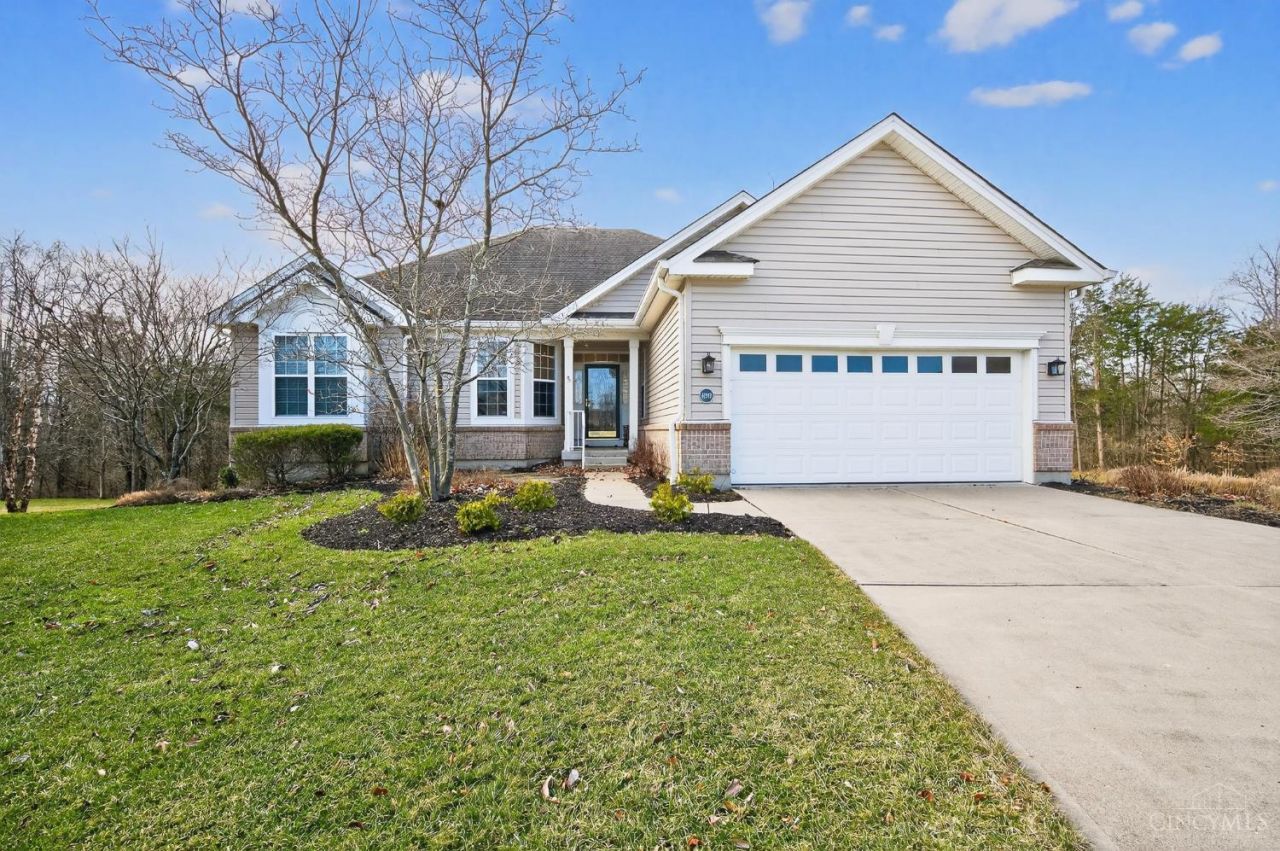Tucked at the end of a private cul-de-sac in Heritage at Miami Bluffs, a premier gated 55+ community, this beautifully maintained ranch offers refined comfort & effortless living. The open floor plan features hardwood floors, expansive windows, & elegant arched doorways. The eat-in Kitchen is appointed with granite counters & stainless steel appliances, opening to a screened porch and new deckideal for quiet mornings or casual gatherings. New HVAC & water softener (2024). The spacious Primary Suite includes a custom California Closet system, while a second renovated first-floor full bath offers a zero-entry shower. The finished walkout lower level is designed for entertaining, with a large Family Room, Poker Room with custom cabinetry, wine cooler & mini fridge, Theater Room with sconce lighting; a private bedroom, full bath, & walkout access to a covered patio. Residents enjoy resort-style amenities, social events, walking trails, and a vibrant, low-maintenance lifestyle.