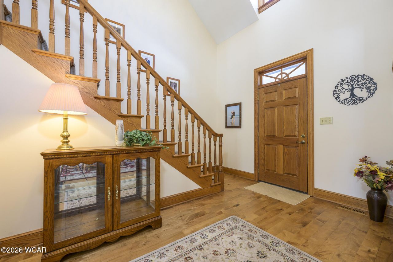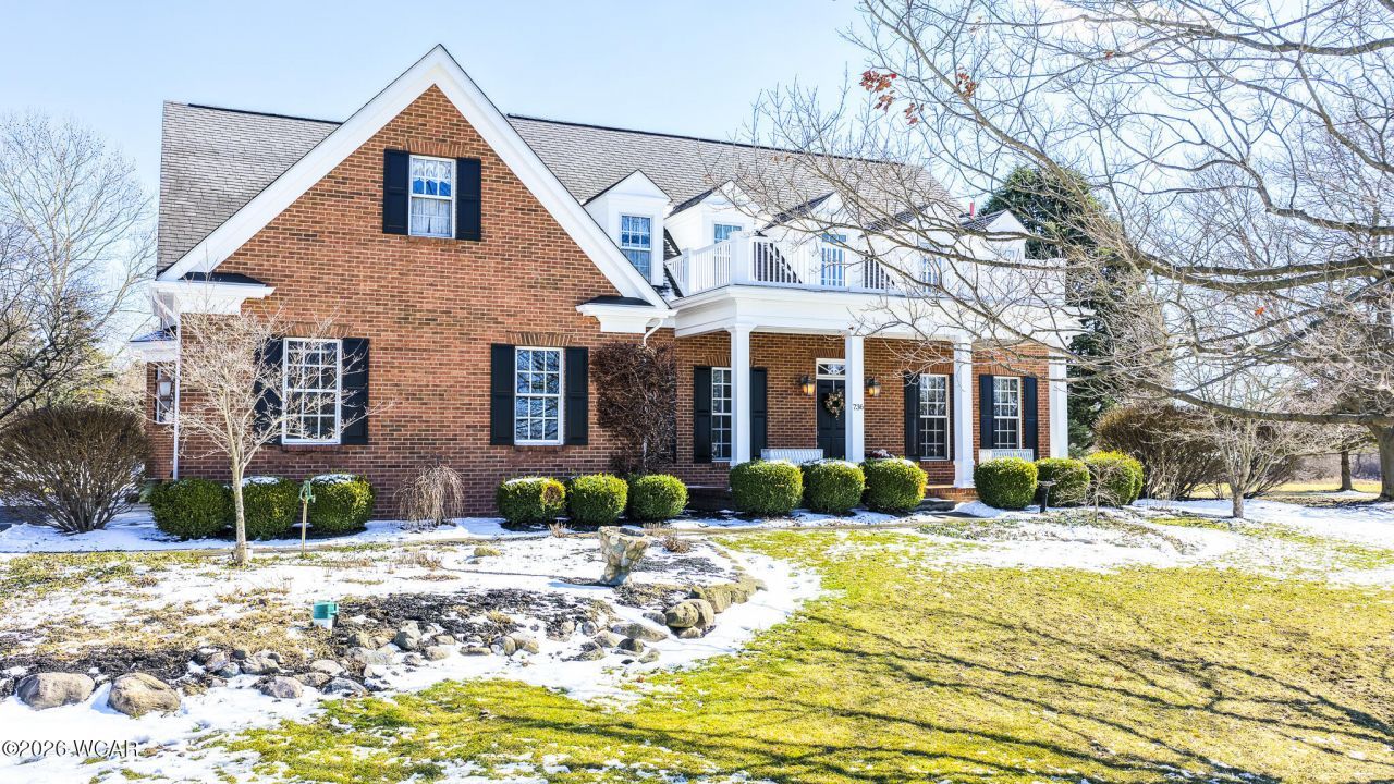 Custom 4-5 bedroom, 4 full and 2 half bath brick home with cedar accents situated on 1.34 acres just outside the city limits. Offering over 3,700 square feet of living space, this home features impressive storage and thoughtful design throughout.A sprawling front porch welcomes you into the grand foyer with an open staircase and expansive dining room showcasing maple flooring. The dining room flows into the inviting living room complete with built-ins, fireplace, skylights, and abundant natural light through custom doors and windows.The oak kitchen is beautifully appointed with granite countertops, an island, and a two-sided gas fireplace shared with the eat-in area. Large windows provide even more natural light and views of the professionally landscaped yard.The main-level primary suite offers private deck access, a walk-in closet, and a luxurious bath with dual vanities, soaking tub, and separate shower. A conveniently located main-floor laundry room sits just off the driveway entrance. An additional den or potential fifth bedroom and a second full bath complete the main level.Upstairs features three spacious bedrooms (one with en suite bath), walk-in closets, bonus space, and updated carpeting.The finished basement expands the living area with new carpet, a family room with built-ins, game area, kitchenette with reverse osmosis system, half bath, and abundant storage.Outdoor amenities include a Trex deck (installed in 2020), screened gazebo, blacktop driveway, RV parking space, storage shed, and a 26x26 detached garage with loft space in addition to the attached two-car garage.Additional upgrades include a whole-house humidifier, radon mitigation system, water softener with sulfur removal, UV filtration system, surge protection, and generator plug.Schedule your private showing today!