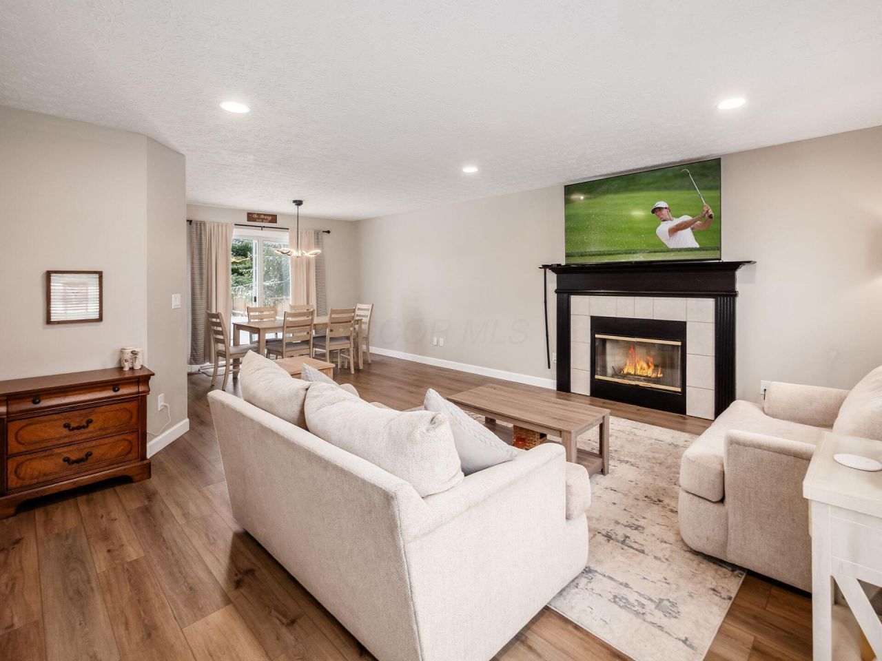 Welcome to this like-new, beautifully maintained home featuring recent updates and modern finishes throughout. Step inside to gorgeous wood-look luxury vinyl flooring, updated baseboards, updated paint, newer light fixtures and more. The family room is spacious and has an easy-to-use gas fireplace for cozy nights in. The kitchen with adjoining dining space is designed to impress with updated cabinets, high-end quartz countertops, and sleek Samsung stainless steel appliances -- perfect for cooking and entertaining alike. Upstairs, you'll find carpet just installed in 2023 and bathrooms completely renovated top to bottom including tile flooring. The oversized owner's suite offers a spa-like retreat with private full bath featuring porcelain tile floors, a glass shower door, rain shower system, and a beautiful marble vanity. Lower level is partially finished for extra living, gym, or home office space. Outside, you'll fall in love with the huge fenced-in corner lot with patio -- ideal for pets, play, or hosting gatherings. Conveniently located just minutes from shopping, dining, and everyday amenities, this move-in-ready home truly has it all! Roof (transferrable warranty) and HVAC system were just replaced in 2023 for additional peace of mind. Open house Sunday 3/8 2-4PM. Welcome home!